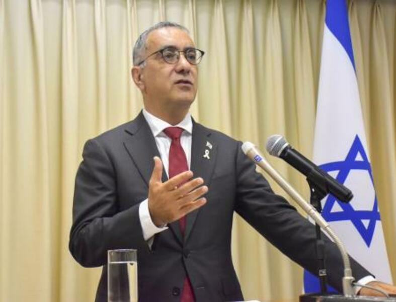 記者会見するイスラエルのコーヘン駐日大使=24日午後、東京都内