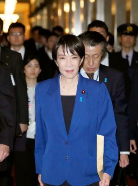 参院本会議での所信表明演説へ向かう高市首相=24日午後