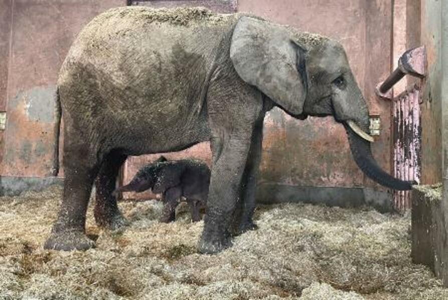 8月、国内で初めて誕生したマルミミゾウの子ども(下)。愛称が「アオ」に決まった(広島市安佐動物公園提供)
