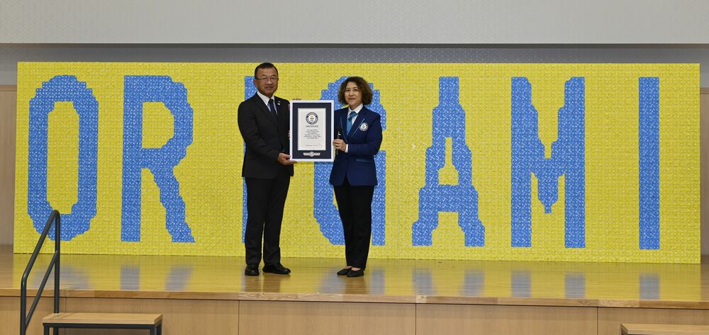 ギネス認定の巨大木版画が展示 那須の君島さん、平和訴え 関東圏で初