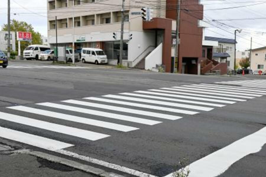 男児2人がはねられる事故が起きた交差点=27日午前、札幌市白石区