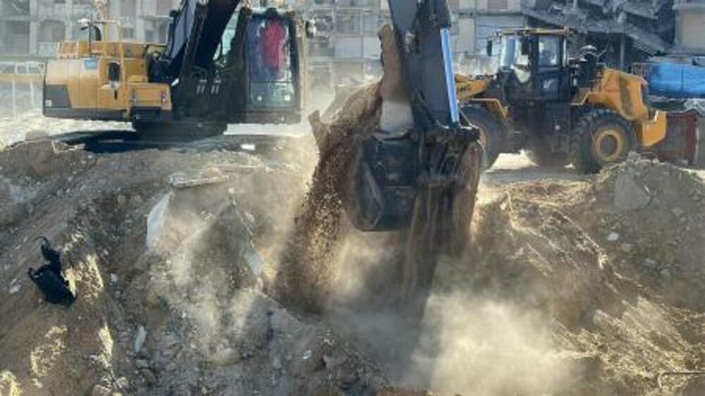 ガザ南部ハンユニスで続く人質遺体の捜索活動=27日(ゲッティ=共同)