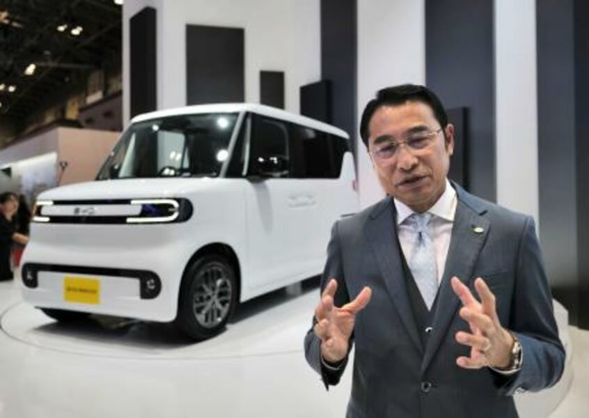 取材に応じるBYD日本法人の劉学亮社長=29日午前、東京都江東区