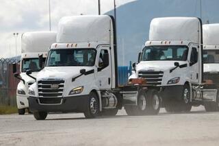 メキシコ・コアウイラ州の組立工場を走行するトラック=9月(ロイター=共同)