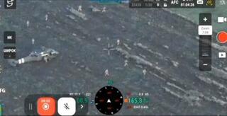 ウクライナ・ポクロウシクに展開するヘリコプターや部隊を写したとされる動画の画像(ウクライナ軍関係者提供、ロイター=共同)