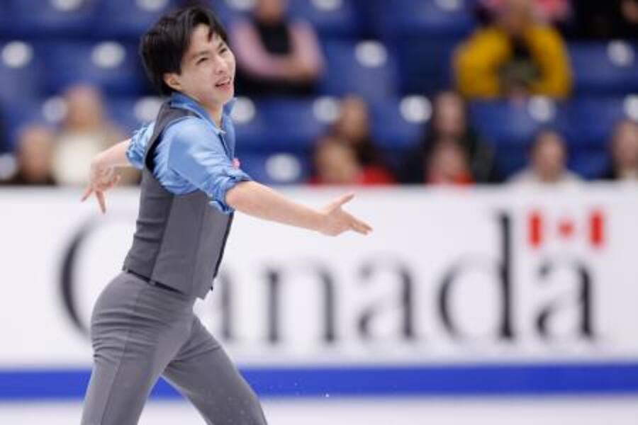 男子で3位となった三浦佳生のフリーの演技=サスカトゥーン(共同)