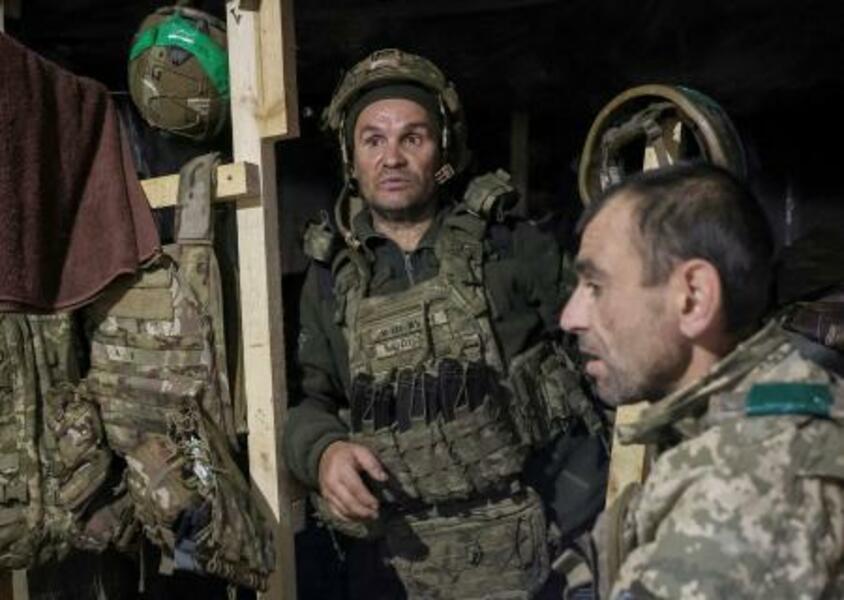 ウクライナ東部ドネツク州ポクロウシク近郊の塹壕(ざんごう)で、休息を取るウクライナ軍の兵士たち=10月15日(ロイター=共同)