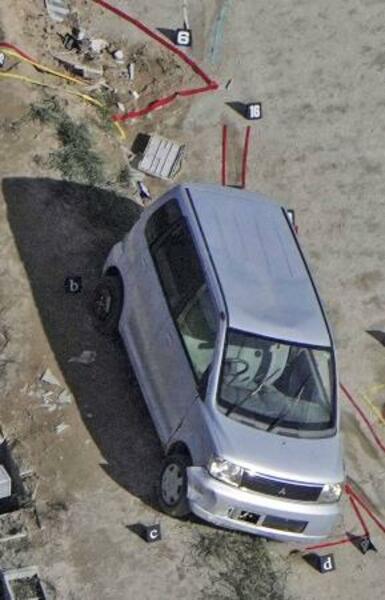 私立埼玉栄高校のグラウンドで事故を起こした車=2024年11月、さいたま市西区