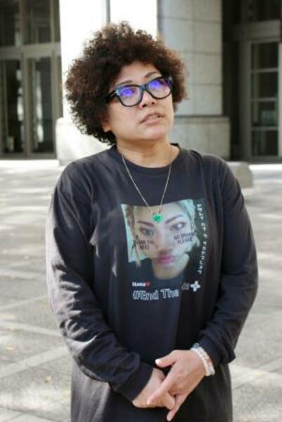 侮辱罪の適用状況を検証する検討会終了後、取材に応じるプロレスラー木村花さんの母響子さん=4日、東京都千代田区