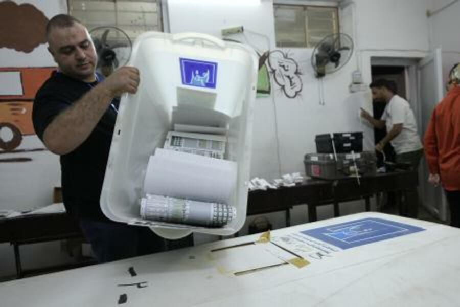 イラク国会選挙の開票作業に当たる当局者=11日、バグダッド(ゲッティ=共同)