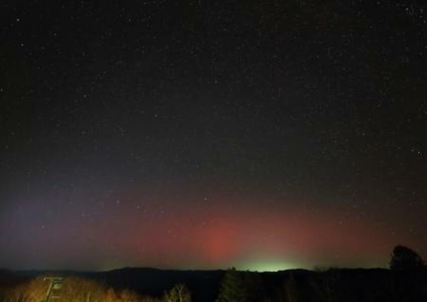 北海道陸別町で観測されたオーロラ=12日午後6時52分(りくべつ宇宙地球科学館提供)