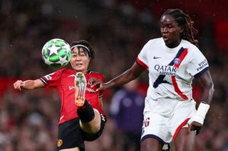 プレーするマンチェスター・ユナイテッドの宮沢ひなた=12日、マンチェスター(ゲッティ=共同)