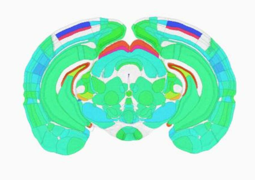 活動のピークとなる時間帯を色分けしたマウスの脳の断面図(上田泰己東大教授提供)