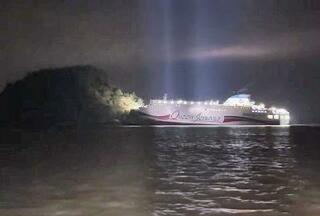 19日、韓国・新安沖で座礁した旅客船(木浦海洋警察署提供・聯合=共同)