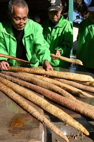県産イチゴ販売額300億円達成を祝い、鏡開きを行う参加者=25日午後、東京都内