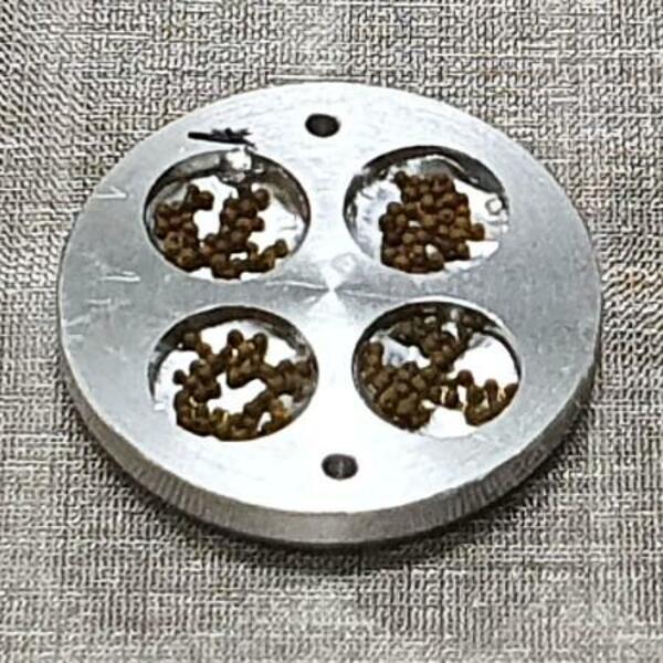 実験装置に入れたコケ胞子の粒。1粒に約4千個の胞子が入っている(藤田知道教授ら提供)