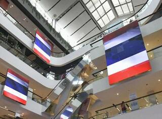 バンコクにある商業施設のディスプレーに映し出されたタイ国旗=8月
