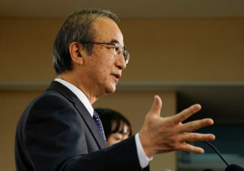 新潟県庁で臨時記者会見する花角英世知事=21日午後