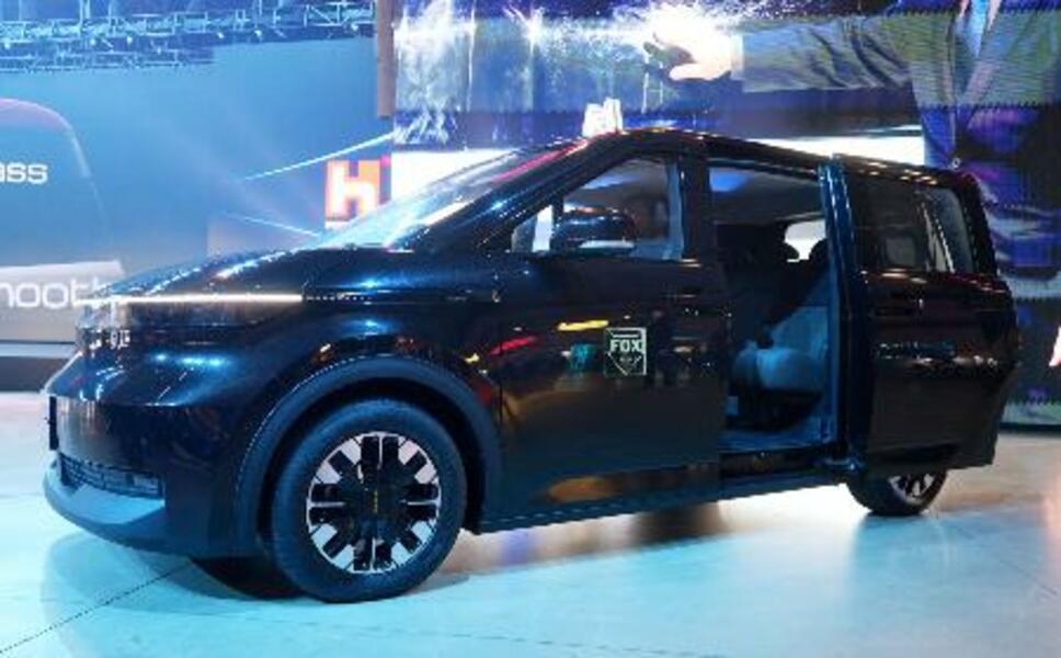鴻海精密工業が公開した日本市場向けタクシー車両=21日、台北(共同)
