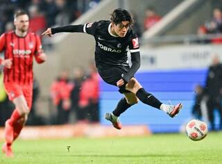 ハイデンハイム戦で攻め込むフライブルクの鈴木唯=ハイデンハイム(共同)