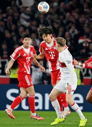 シュツットガルト戦で競り合うバイエルン・ミュンヘンの伊藤(中央)=シュツットガルト(共同)