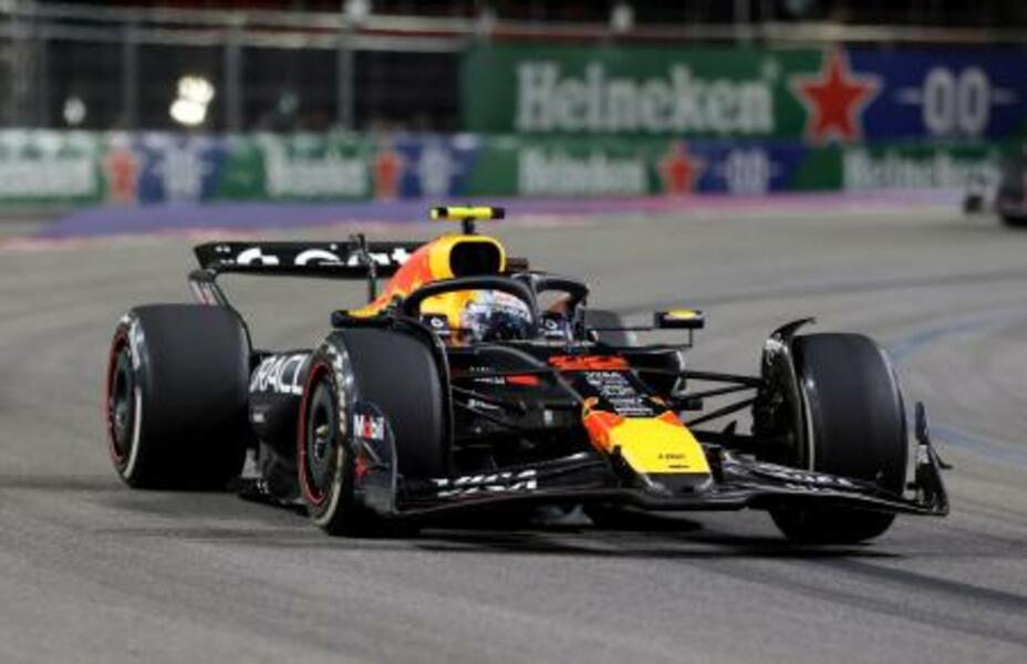 F1ラスベガスGPで走行するレッドブルの角田裕毅=米ネバダ州ラスベガス(ロイター=共同)