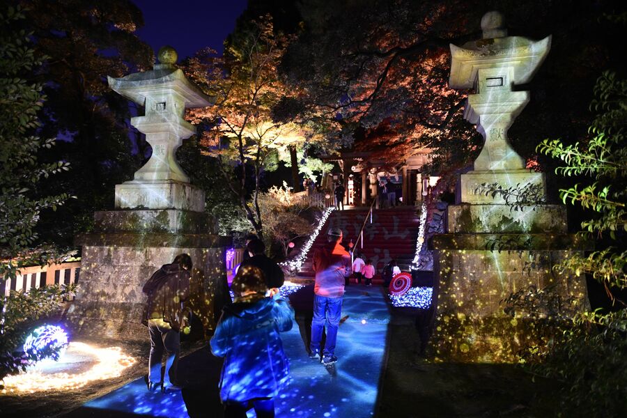 秋の彩り、水面に揺れる 佐野・出流原弁天池でライトアップ