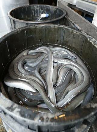 ウナギ料理店のニホンウナギ=23日、東京都目黒区