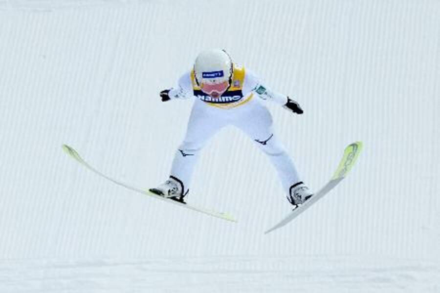 W杯ジャンプ女子個人で開幕2連勝を決めた丸山希=23日、リレハンメル(共同)