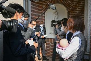 熊本市の慈恵病院を見学する大阪府泉佐野市の視察団=26日午前