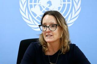 25日、レバノンの首都ベイルートで取材に応じるUNIFILのアーディル報道官(共同)