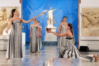 ギリシャ・オリンピアで開催されたミラノ・コルティナ冬季五輪の聖火の採火式=26日(ロイター=共同)
