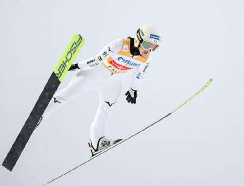 W杯ジャンプ女子個人第4戦で2位となった丸山希の飛躍=ファルン(共同)