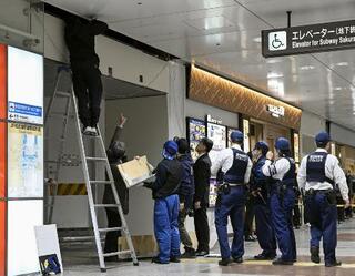天井パネルなどが落下したJR名古屋駅の現場=11月
