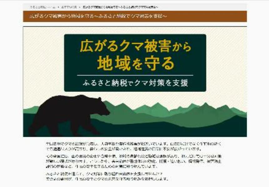 ふるさと納税ポータルサイト「さとふる」が作成した、クマ対策への寄付を募る自治体を紹介する特集ページ