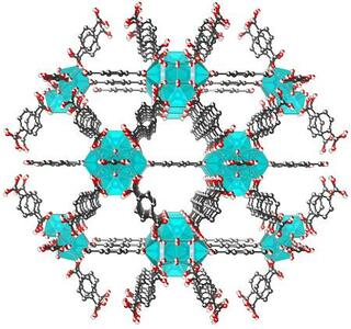 PFASに吸着作用を示す代表的なMOFの一つの構造を再現した画像(東邦大の今野大輝准教授提供)