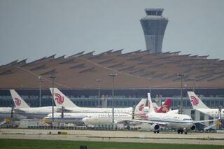 北京首都国際空港に駐機する中国国際航空などの航空機=2022年