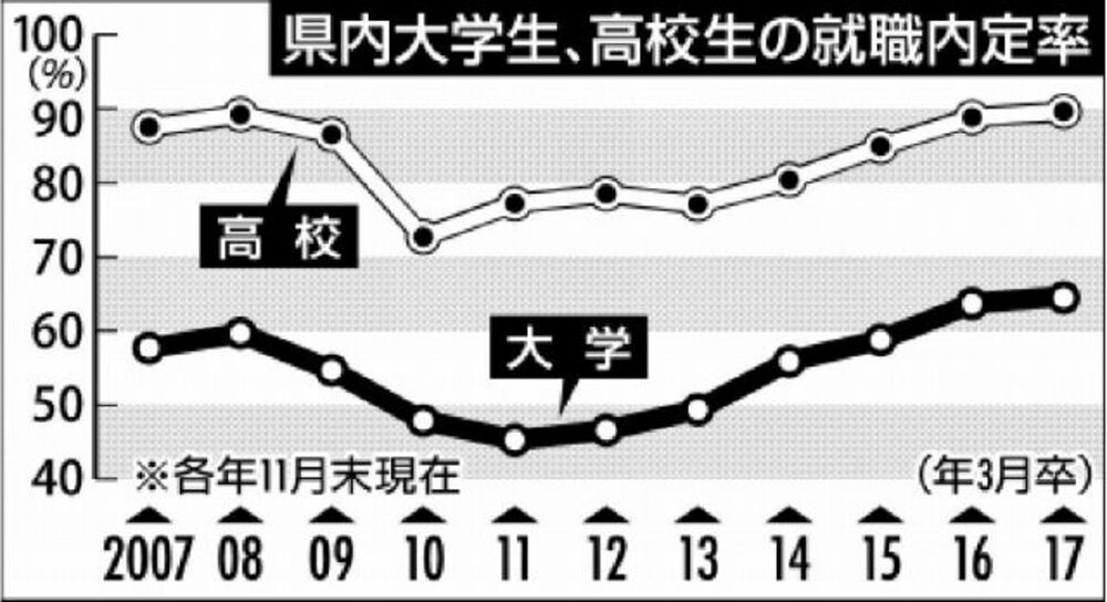 大卒過去2番目の64.4%/栃木労働局/11月現在就職内定率
