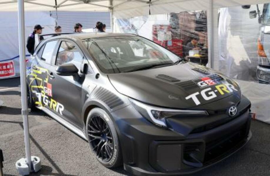 トヨタ自動車の超電導モーターを備えた水素エンジン車=11月、静岡県小山町の富士スピードウェイ