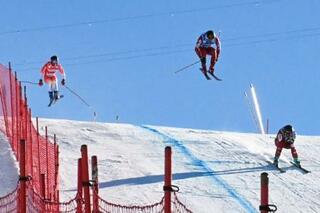 アルペンスキーW杯女子滑降、8季ぶりの優勝を果たした41歳のリンゼイ・ボン=12日、サンモリッツ(keystone提供・AP=共同)