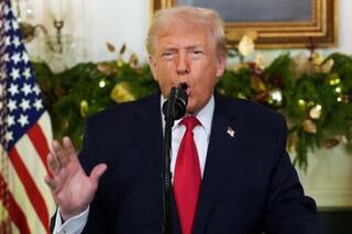 米ホワイトハウスで演説するトランプ大統領=17日(Doug Mills/The New York Times提供・AP=共同)