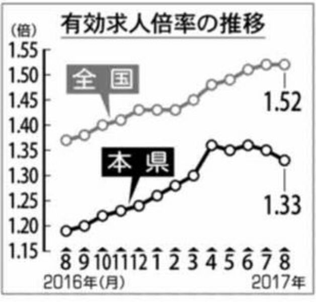 求人1・33倍で横ばい県内8月 雇用情勢は「改善進む」