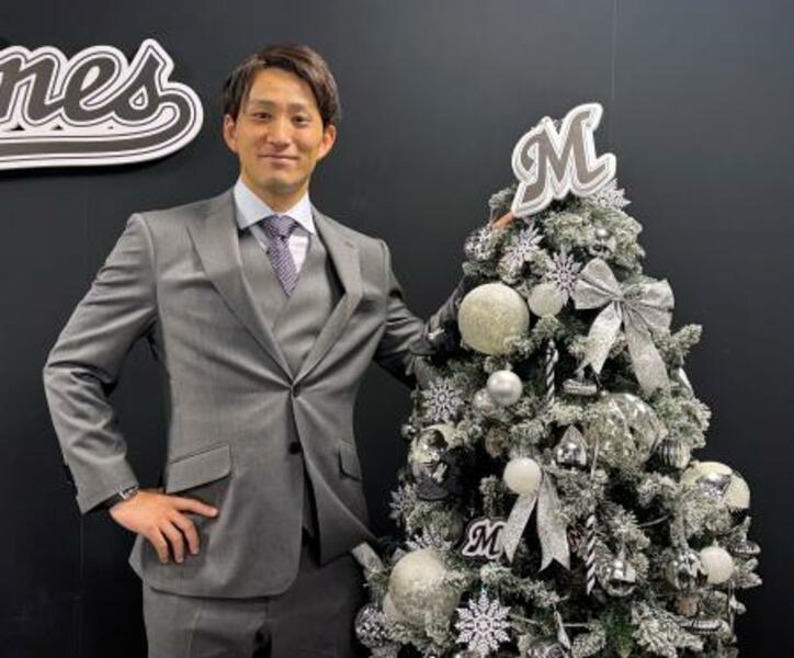 契約更改交渉後、写真撮影に応じポーズをとるロッテの小島=17日、ZOZOマリンスタジアム