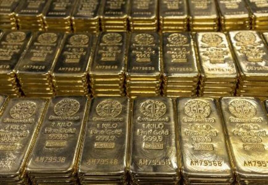 スイスの精錬所に並ぶ金の延べ棒=2022年(ロイター=共同)