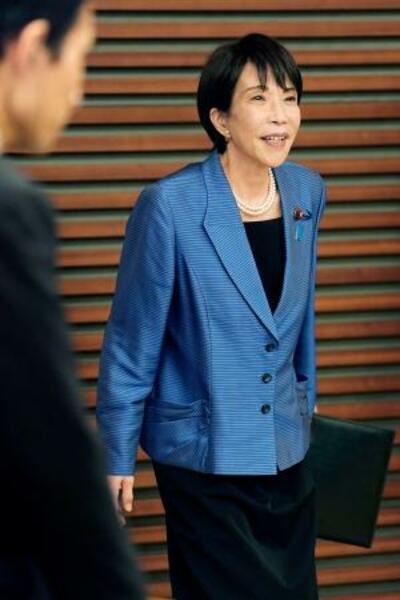 共同通信加盟社編集局長会議での講演を終え、引き揚げる高市首相=23日午後、東京・東新橋