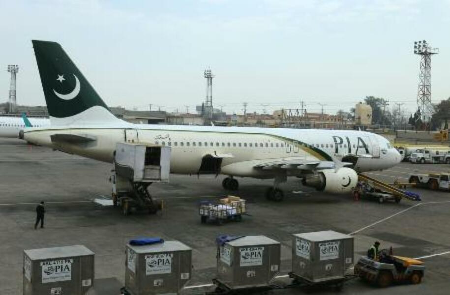 パキスタン航空の旅客機=2017年、イスラマバード国際空港