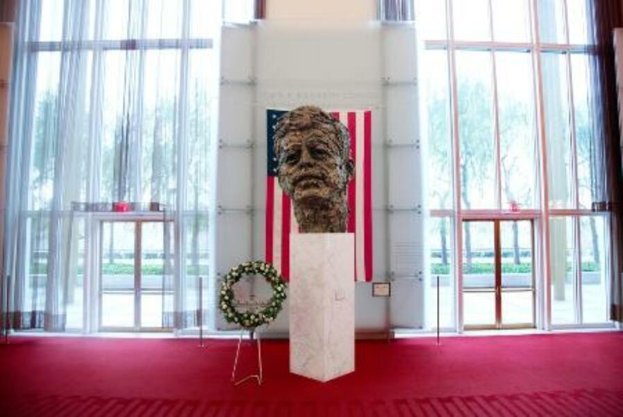 ケネディ・センターにあるケネディ元米大統領の銅像=2013年11月、ワシントン(AP=共同)