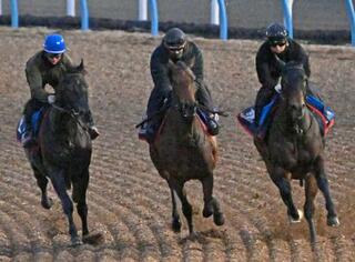 有馬記念に向け調整するレガレイラ(中央)=美浦トレーニングセンター