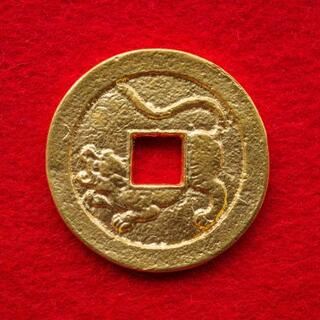 復刻された純金製「水戸虎銭」の虎の姿が描かれた面(水戸市提供)