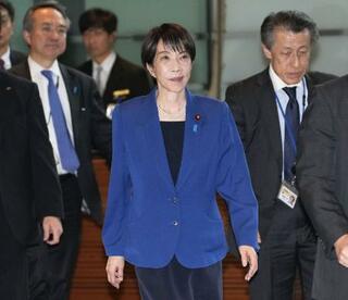 25日、政府与党政策懇談会に向かう高市首相(中央)=首相官邸
